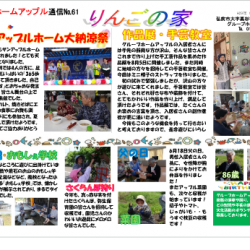 グループホームアップルでは、“グループホームアップル通信「りんごの家」”を発行しています。 平成29年8月10日に発行されたNo.61では、サンアップルホーム大納涼祭の様...詳細を見る